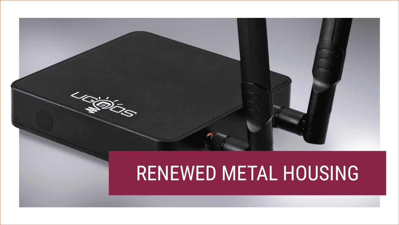 The Ugoos AM8 Metal housing has a design that focuses on cooling efficiency and durability. The metal housing acts as a heat sink, allowing for better heat dissipation and preventing the device from overheating.
