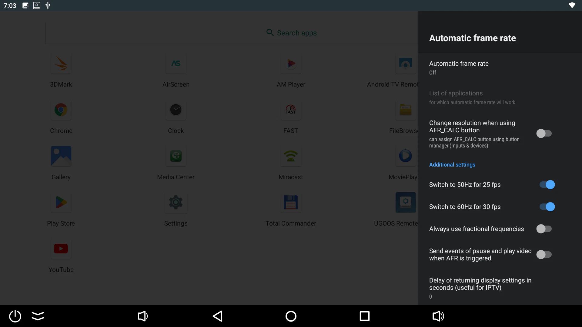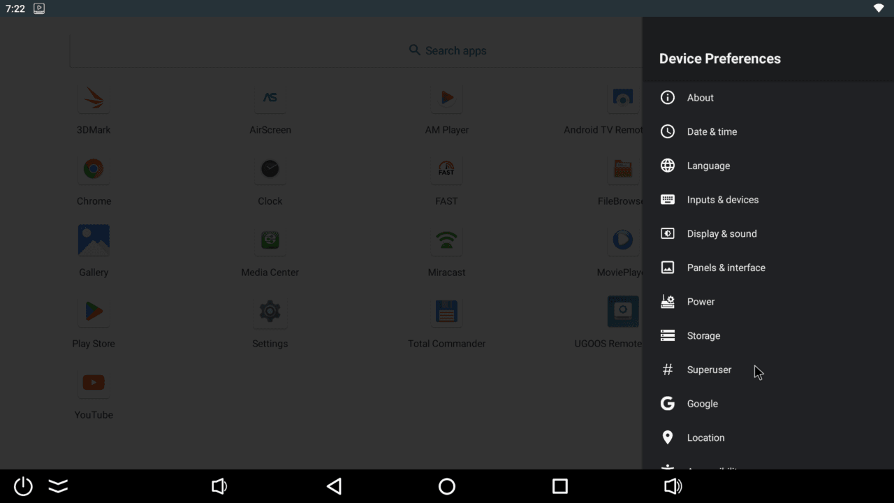 Ugoos included features we found useful. Some noteworthy features include the convenient one-click Root button you would not find in most Android TV boxes. They also added advanced sounds settings for selecting preferred audio formats, frame rate settings, and lastly also power management settings that can be used to set different power scenarios.