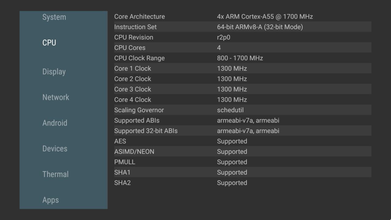 As previously mentioned, the SK2 device is categorized as a lower to mid-range device, powered by a Realtek RTD1325 quad-core ARM Cortex-A5 processor with a maximum clock speed of 800MHz up to 1.7 GHz, which is relatively modest. The CPU specifications suggest that it may not be the best option for managing resource-heavy Android gaming and graphics, due to the constraints of its processor.