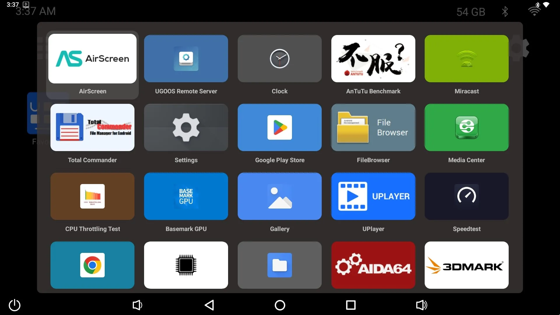 The device includes two standard pre-installed launchers to choose from: ULauncher3, which offers a desktop-style design, and another called ULauncher, which arranges apps and shortcuts into large, TV-friendly tiles.