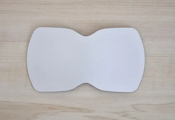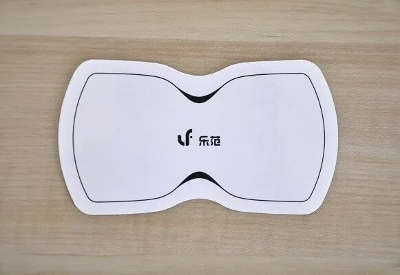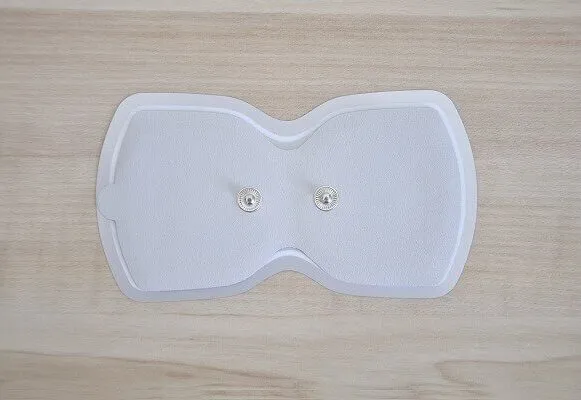 The package comes with two multi-usable butterfly-shaped electrode pads with ~123mm length and a wide of ~60 mm that can be used dozens of times until the glue on the sticker becomes less effective.
