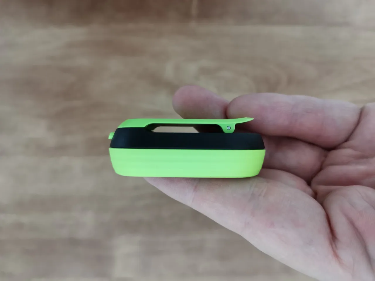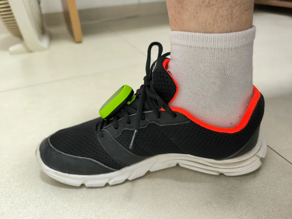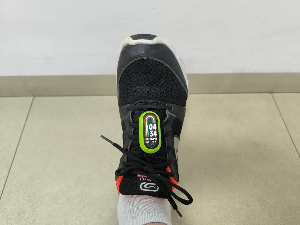 The fitness tracker weighs only 24g and can be attached to a shoe. A straightforward lock and release mechanism with a button is utilized in the running clip. The clip is mounted to the shoe using the shoelaces.