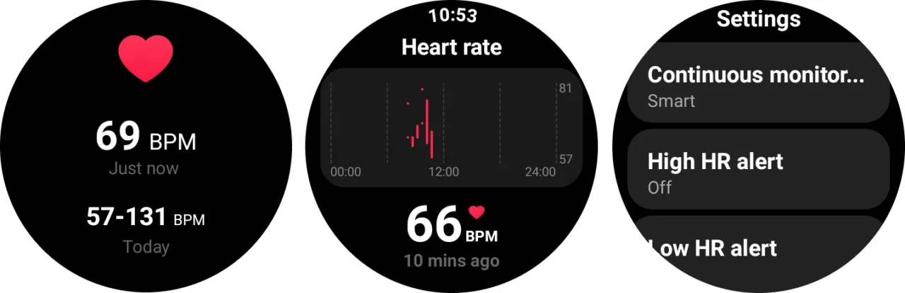 You can either use the watch on its own to monitor your heart rate, or pair it with the Mi fitness app for a more comprehensive tracking experience. The app provides great detailed reports and history information on your BPM levels over days, weeks, and even months. There are several options available for setting up this feature. You can choose to set intervals in minutes to continuously monitor your BPM levels, with options available for every 1, 10, or 30 minutes. Alternatively, you can use the smart mode, which is likely to conserve more battery power.